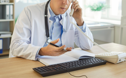 医師不在時には、院内スタッフがサポートしながらグループ医療機関の医師とオンラインで診療を行う場合があります。
